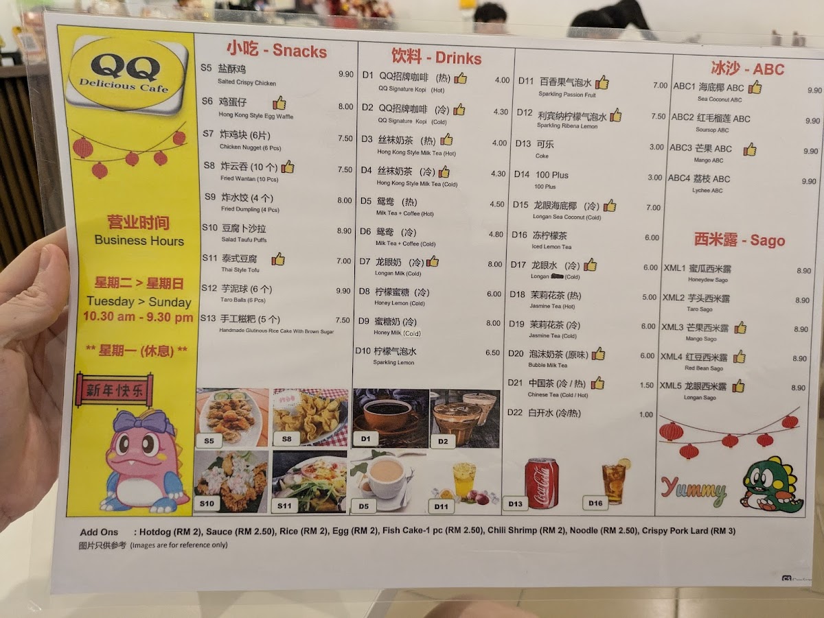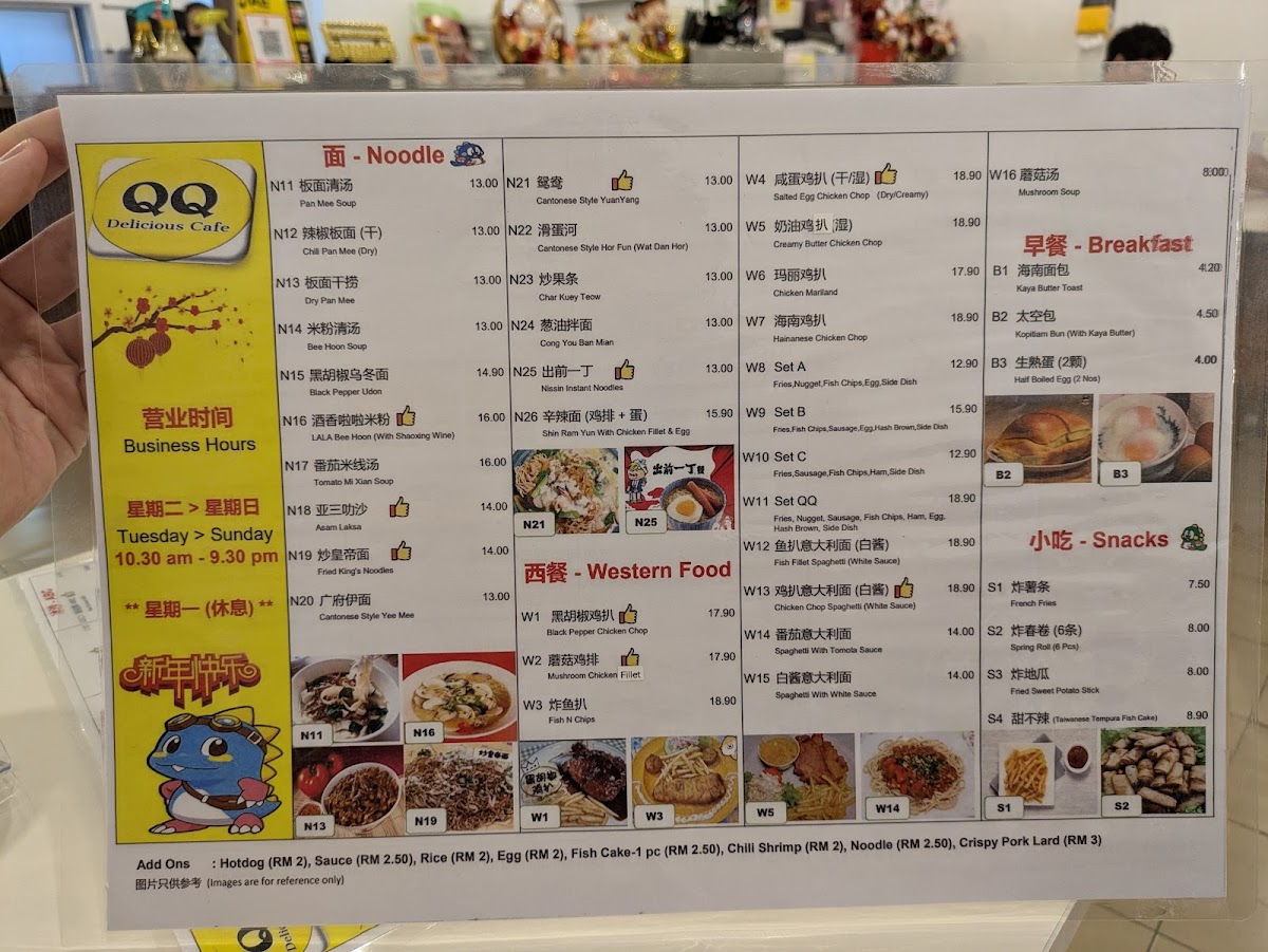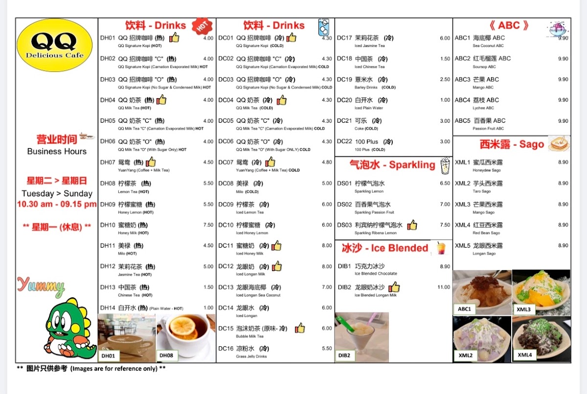 Breakfast options are simple yet comforting, featuring perfectly cooked half-boiled eggs and buttery Kopitiam buns with kaya. The homemade QQ Noodle is a standout, praised for its springy texture and subtle, savory soup, highlighting the kitchen’s dedication to quality. Generous portions, fresh ingredients, and attentive service create a welcoming dining experience. From hearty Claypot Yee Mee to refreshing mango sago dessert, QQ Delicious Cafe balances tradition and creativity, making each visit memorable for family and food enthusiasts alike.